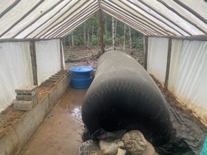 Animal waste is processed through biodigesters, producing biogas that powers the kitchen and facilities of the farm.