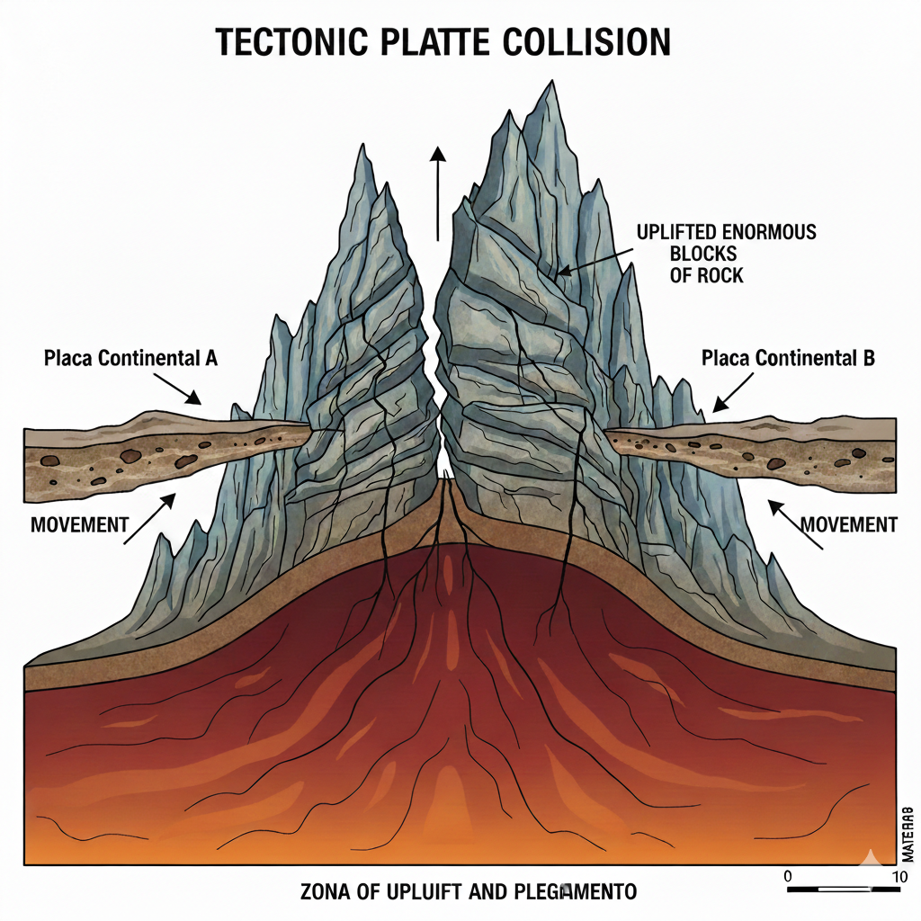 Collision of tectonic plates, which lifts enormous blocks of rock