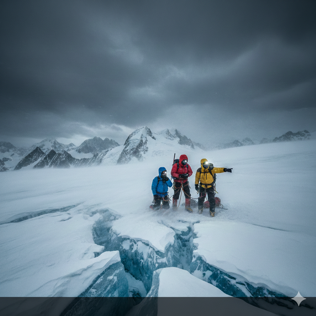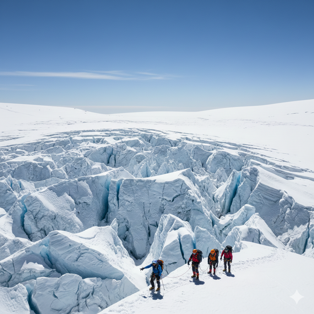 🔹 Mandatory use of ropes and technical equipment on glaciers.