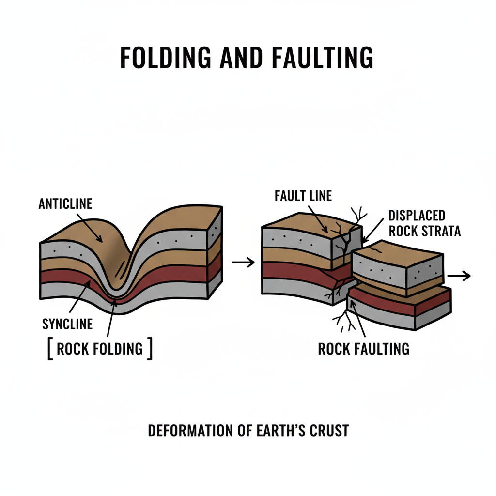 Folding and faulting, which deform the Earth’s crust